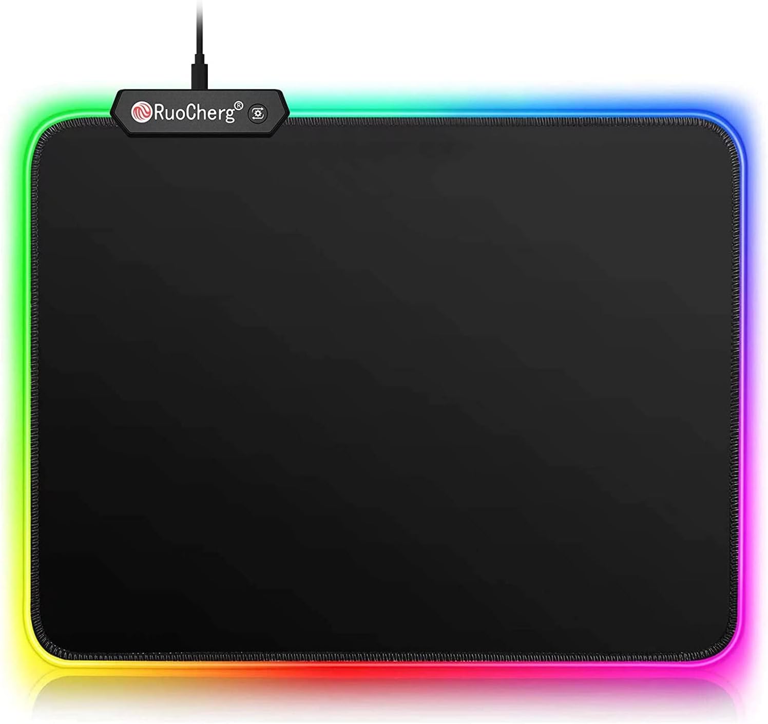RuoCherg RGB Tapete LED Gaming Mouse Pad, 12 modos de iluminação 25x30cm