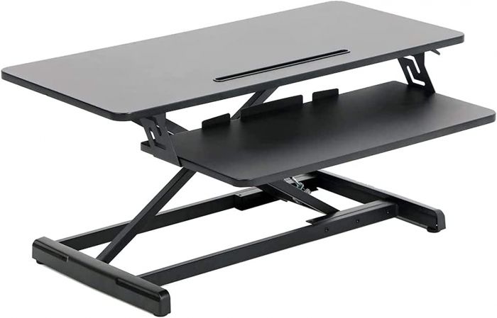 Estação de trabalho ajustável em altura com mola a gás para PC, laptop e dois monitores HVS-B03 2 em 1 -