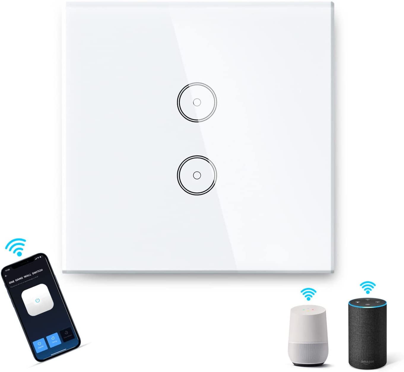 Interruptor de luz WiFi 2 Gang 1 via, compatível com Alexa/Google