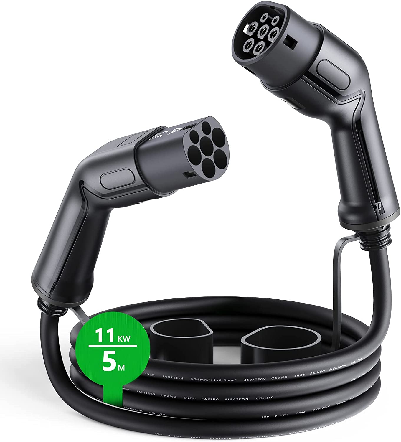 WORKERSBEE Cabo de carregamento para veículos elétricos, EV tipo 2 a tipo 2, 16 A, trifásico, 5 metros