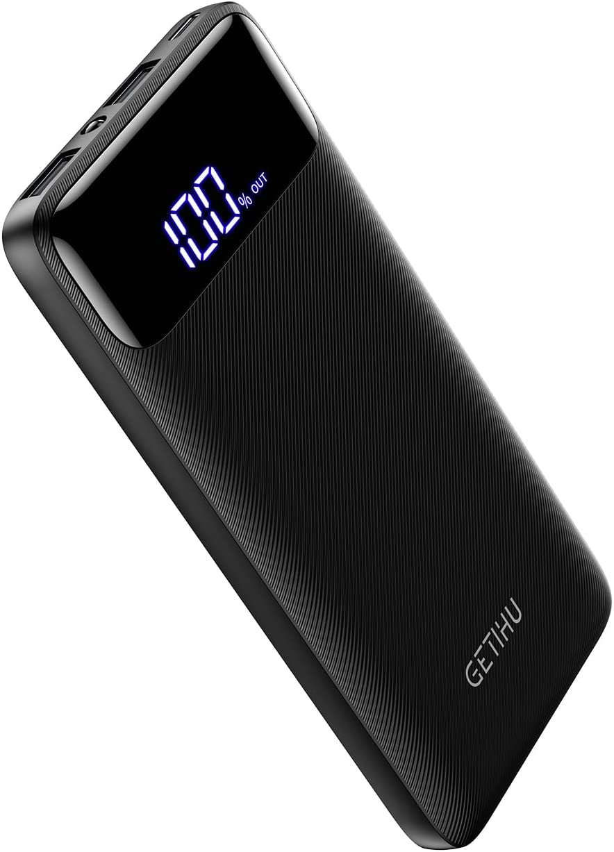 Power bank de alta velocidade com 2 portas USB A e 1 C, capacidade 10,000 mAh
