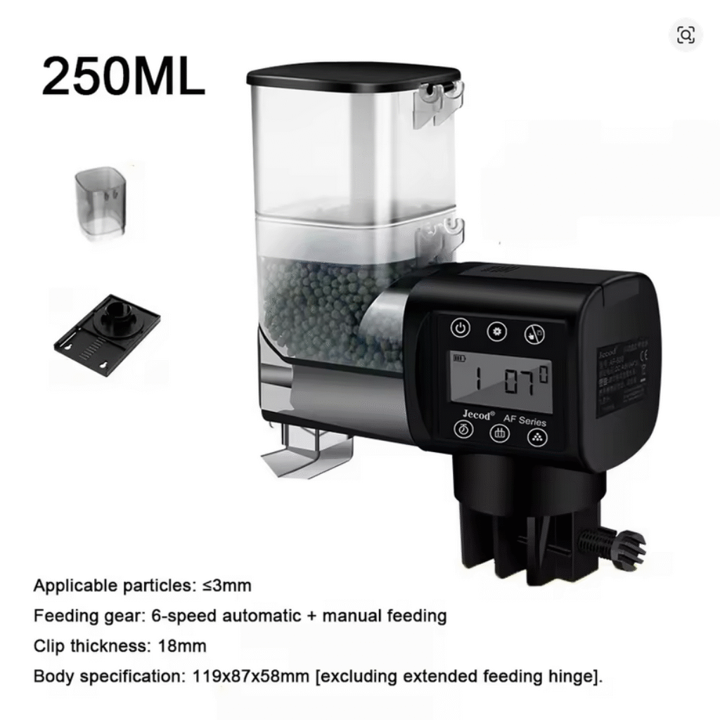 Alimenta todos os tipos de alimentos de peixe, incluindo flocos, pellets, pós e tiras. Ideal para aquários e aquários domésticos. Pode alimentar a maioria dos peixes de estimação, tartarugas, ect.
