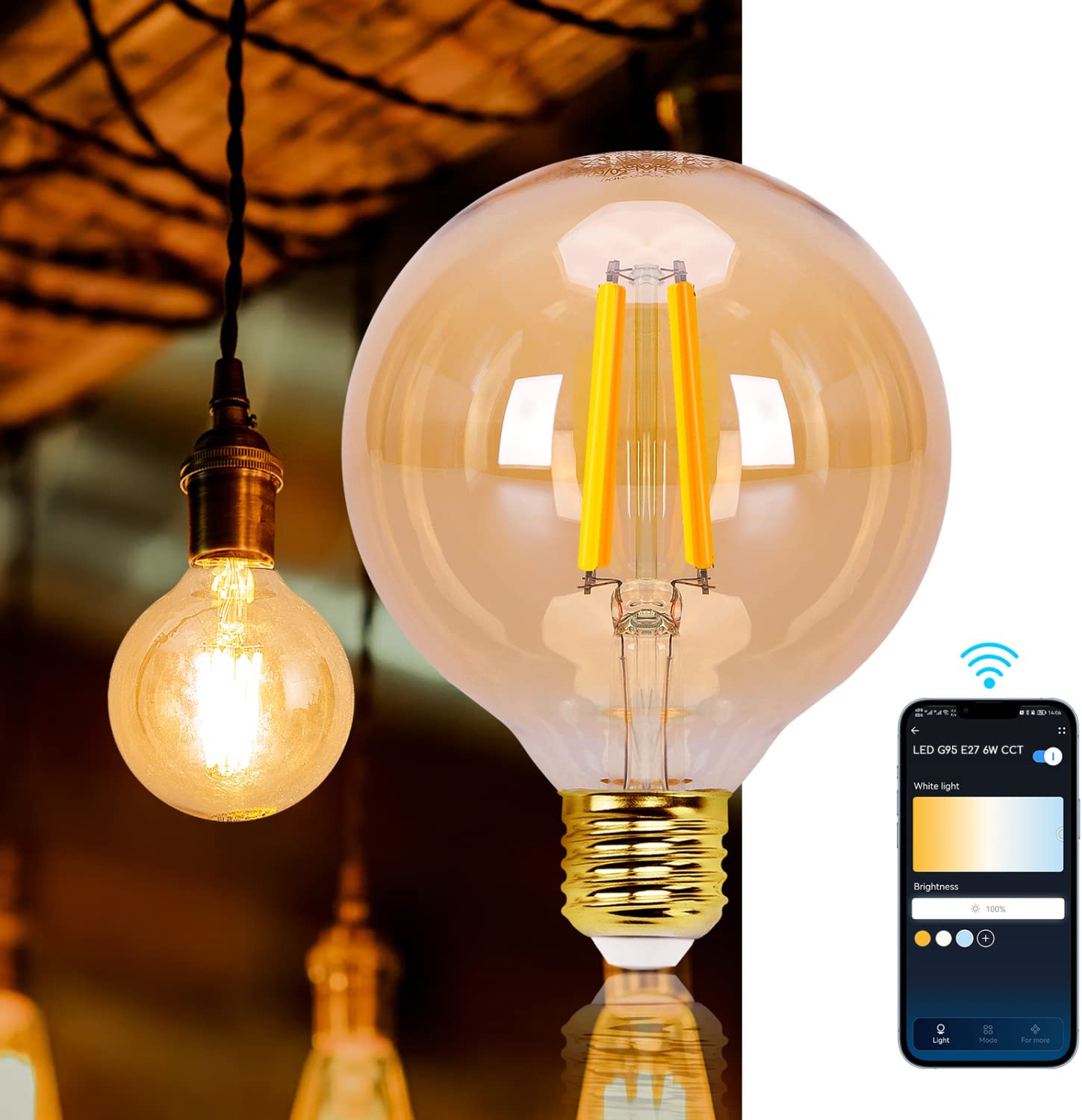 Aigostar Lâmpada LED inteligente vintage, G95 Âmbar tipo globo, 6 W, 806 LM, regulável quente a frio