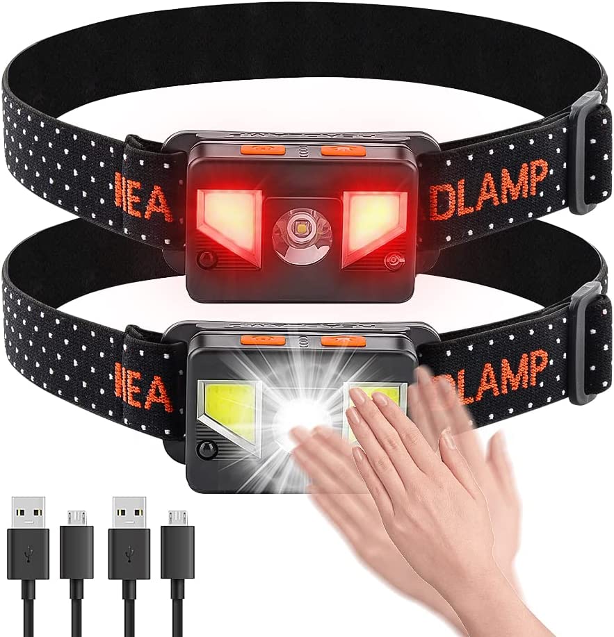 Lanterna de cabeça COB LED 1000 lumens, [2 unidades], recarregável por USB