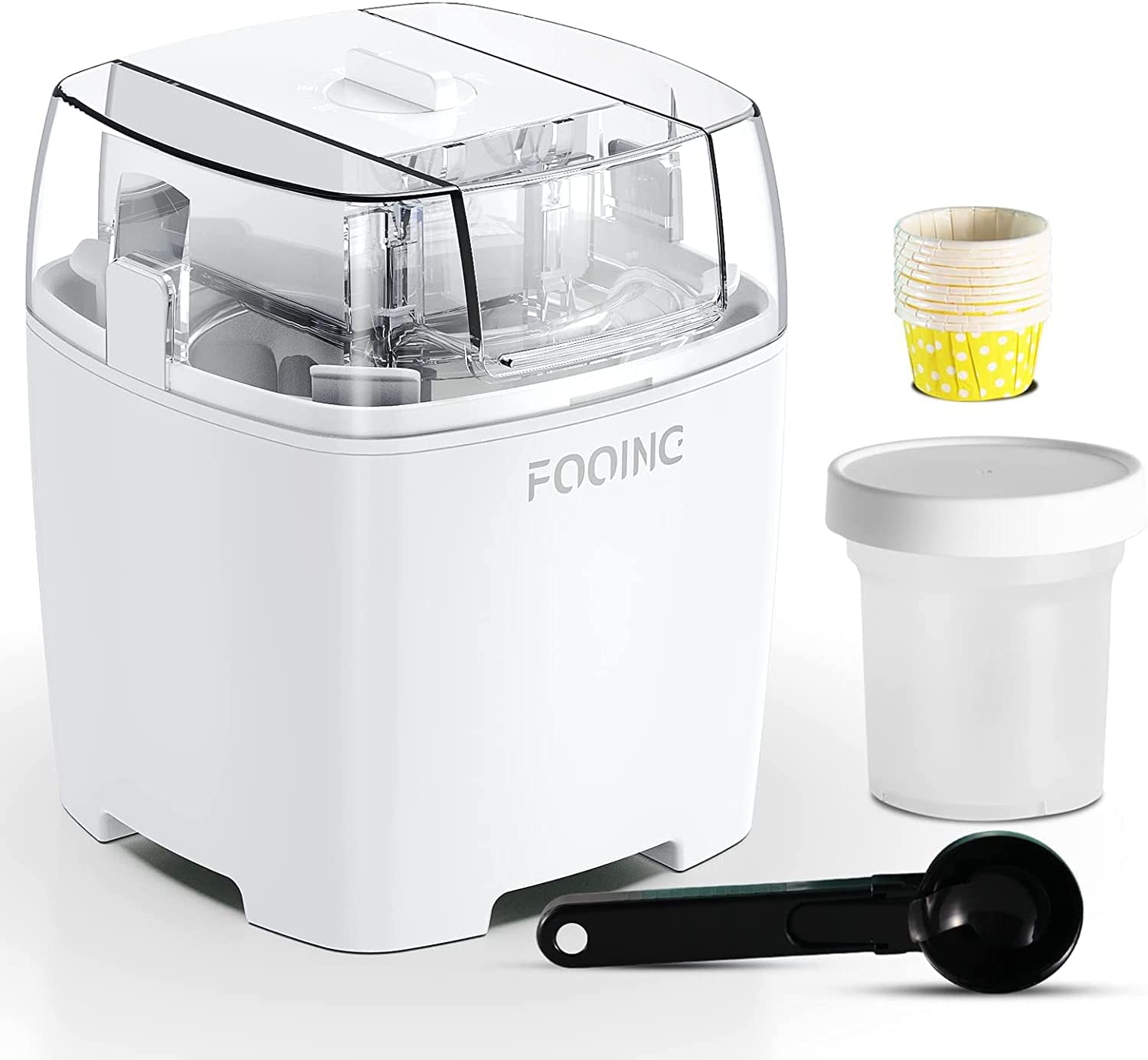 Máquina de fazer sorvetes de 1,5L com botão rotativo, máquina de sorvete de aço inoxidável, adequada para gelados, iogurte congelado e sorvete, incluindo livro de receitas e copos de papel -