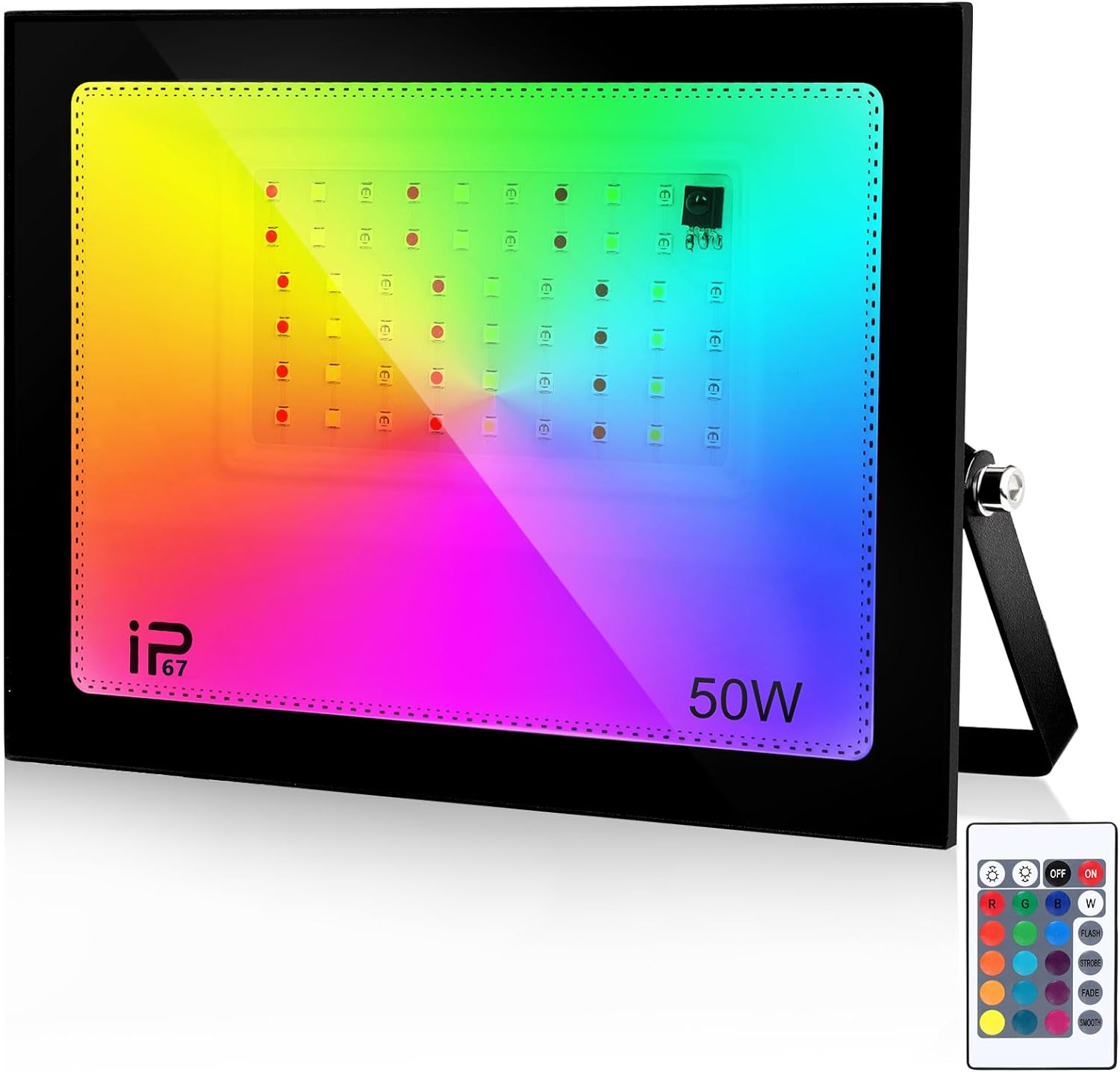 4 modos de 16 cores: VRFMALIY 50 W LED RGB Foco LED de exterior, um controlo remoto incorporado, que oferece 4 modos predefinidos: intermitência, […] -
