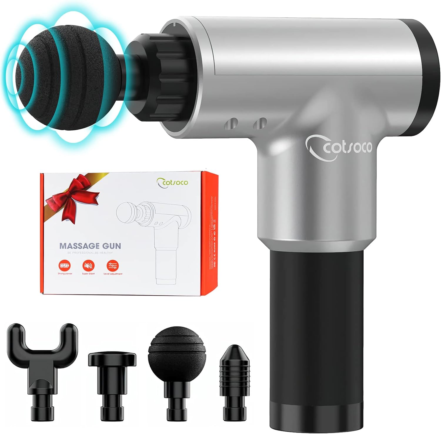 Pistola de massagem elétrica sem fios com 6 níveis ajustáveis e 4 cabeças
