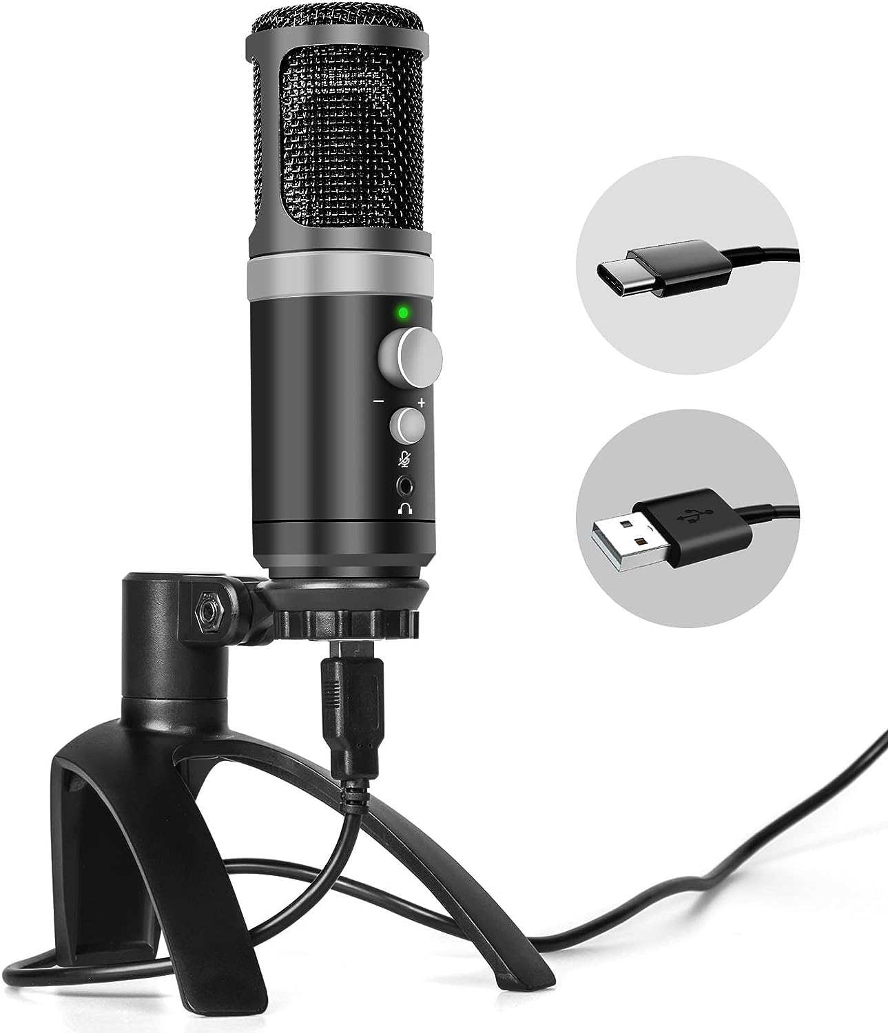 Microfone USB, microfone PC condensador Plug & Play