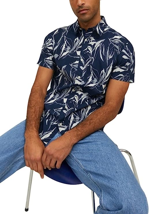 Camisa para homem da marca dinamarquesa Jack & Jones 100 % algodão Lavagem à máquina Estilo do colar: Gola Kent Manga corta Camisa -