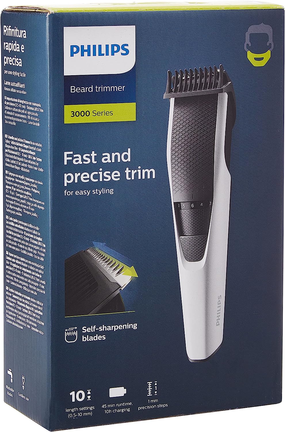 Philips Serie 3000 Aparador de barba O pente guia lift & Trim direciona o cabelo para as lâminas para obter um corte uniforme Lâminas de aço in […] -