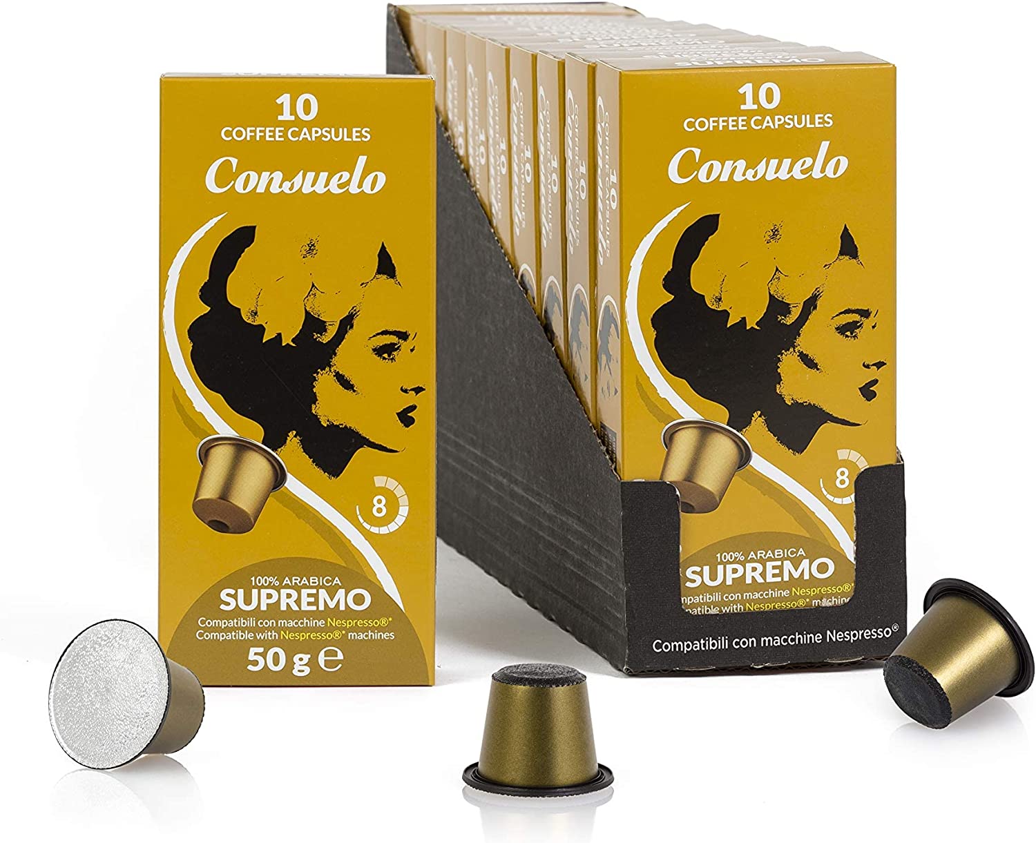 Consuelo Cápsulas de Espresso Compatíveis Nespresso 100 cápsulas (10×10) – Versão NOVA e melhorada -