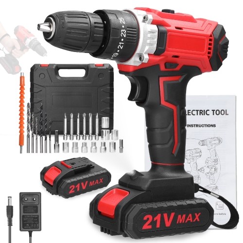 Furadeira de lítio sem fio de 21 V com baterias de lítio removíveis, duráveis e confiáveis, diversas velocidades, luz LED, com ajuste de formato […] -