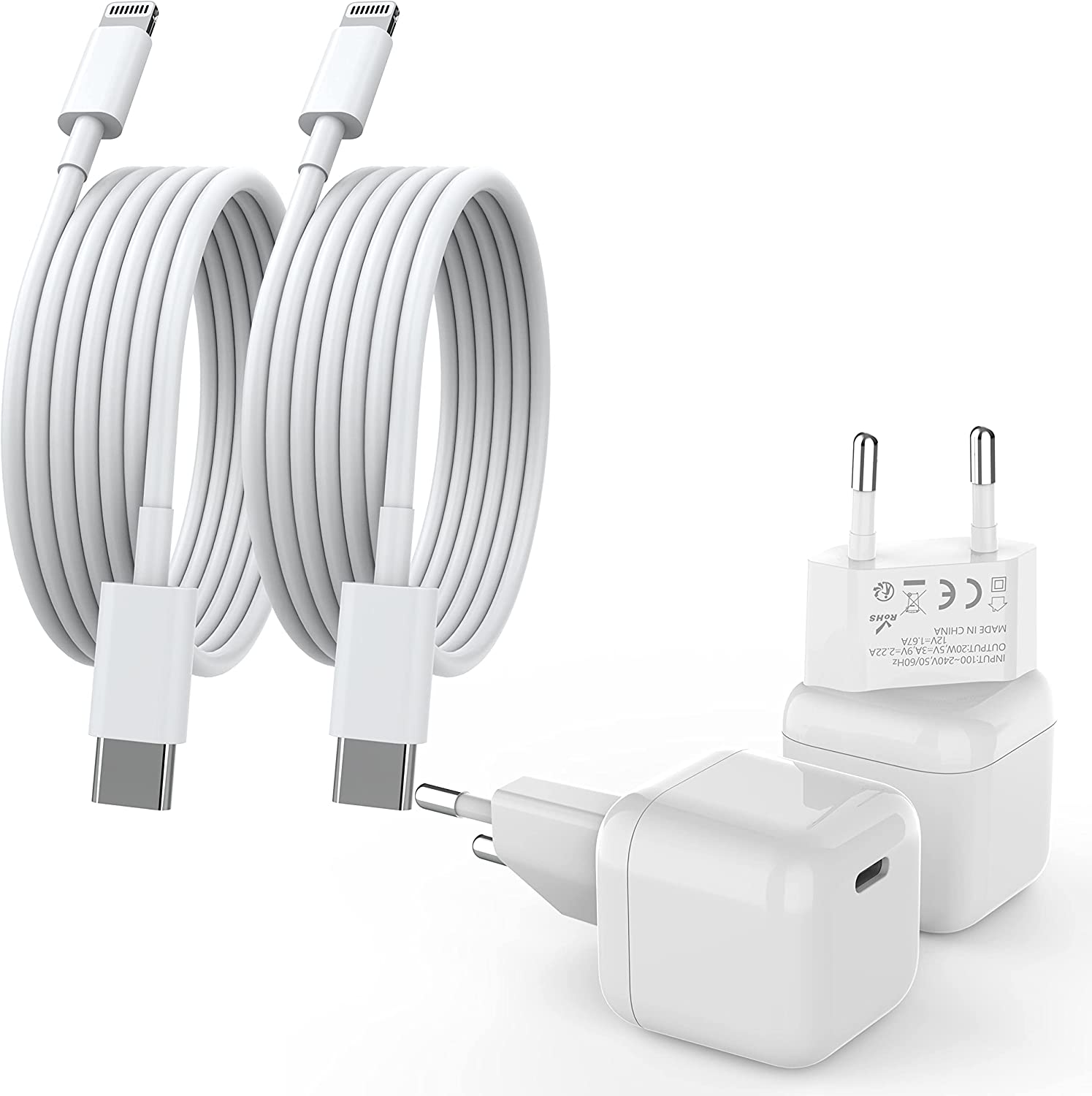 Carregador 20W (USB C – lightning) ou (USB C – USB C), Pack de 4 peças