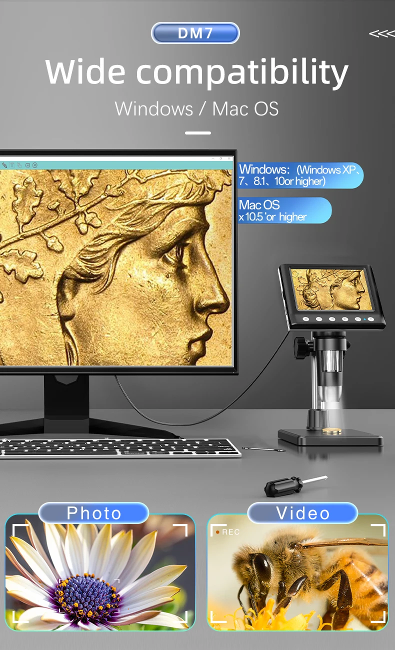 Conteúdo da embalagem: microscópio *1 suporte *1 manual de especificações *1 cabo USB *1 CD de instalação (Contém software de driver, medição)