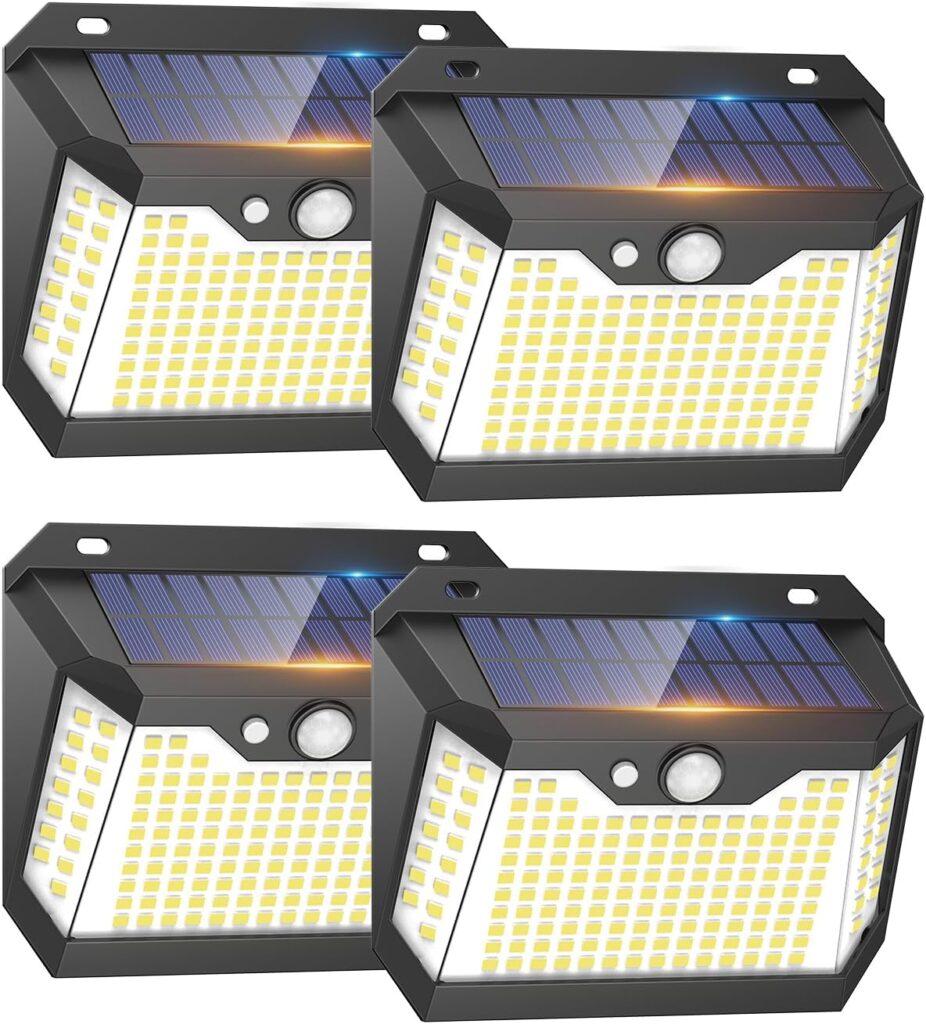 Pacote de 4 luzes solares LED exterior Auto ON&OFF, 3 modos luz